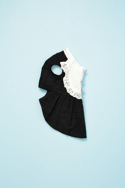 アイレットレースやフリルの甘いデザインが可愛いワンピース。