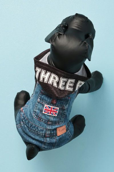 デニムオーバーオール柄パーカー ヒートワン ブラック