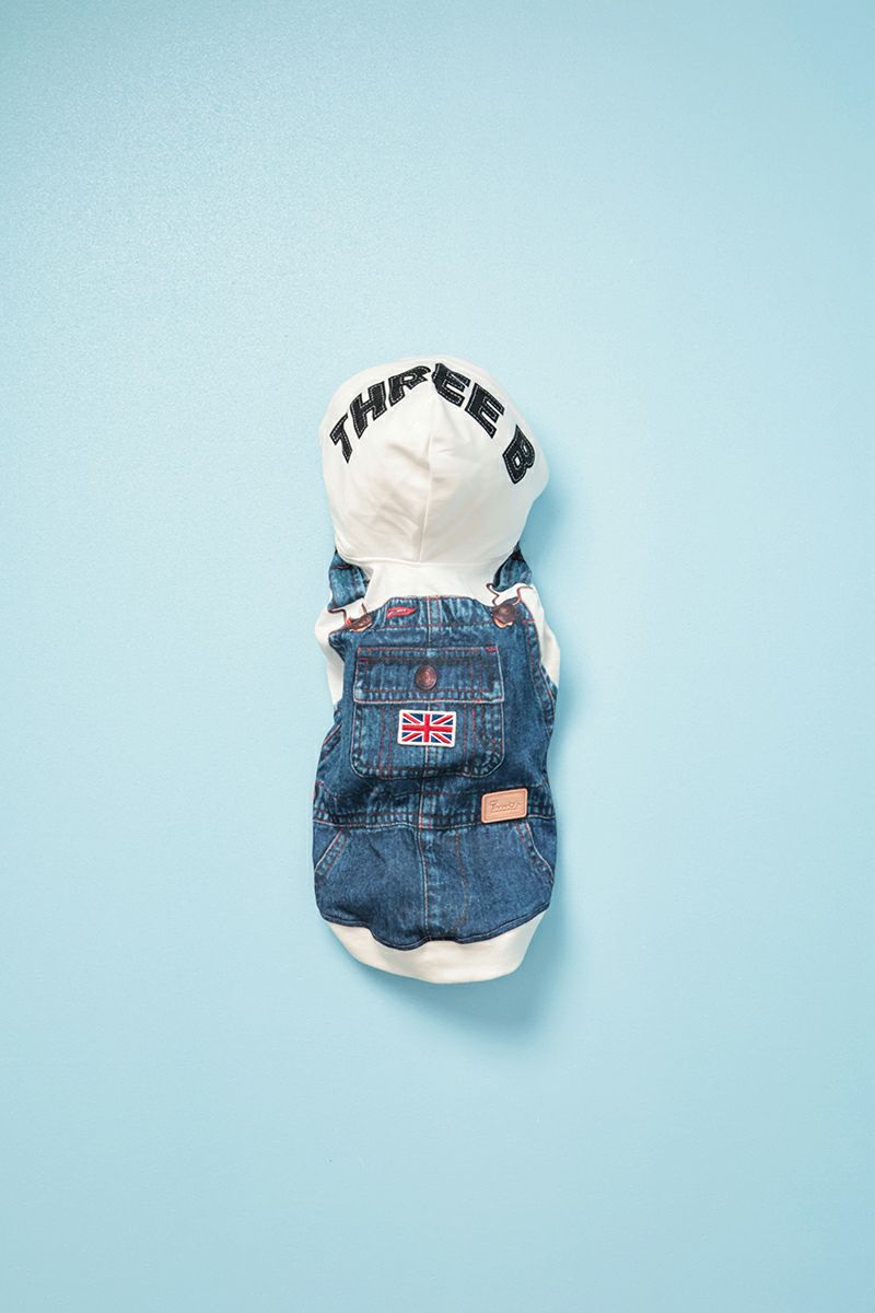 デニムオーバーオール柄パーカー ヒートワン ホワイト
