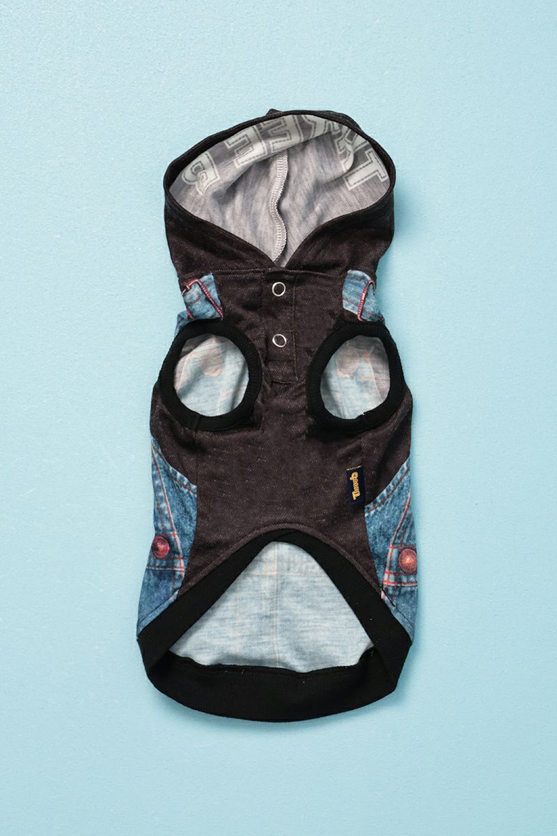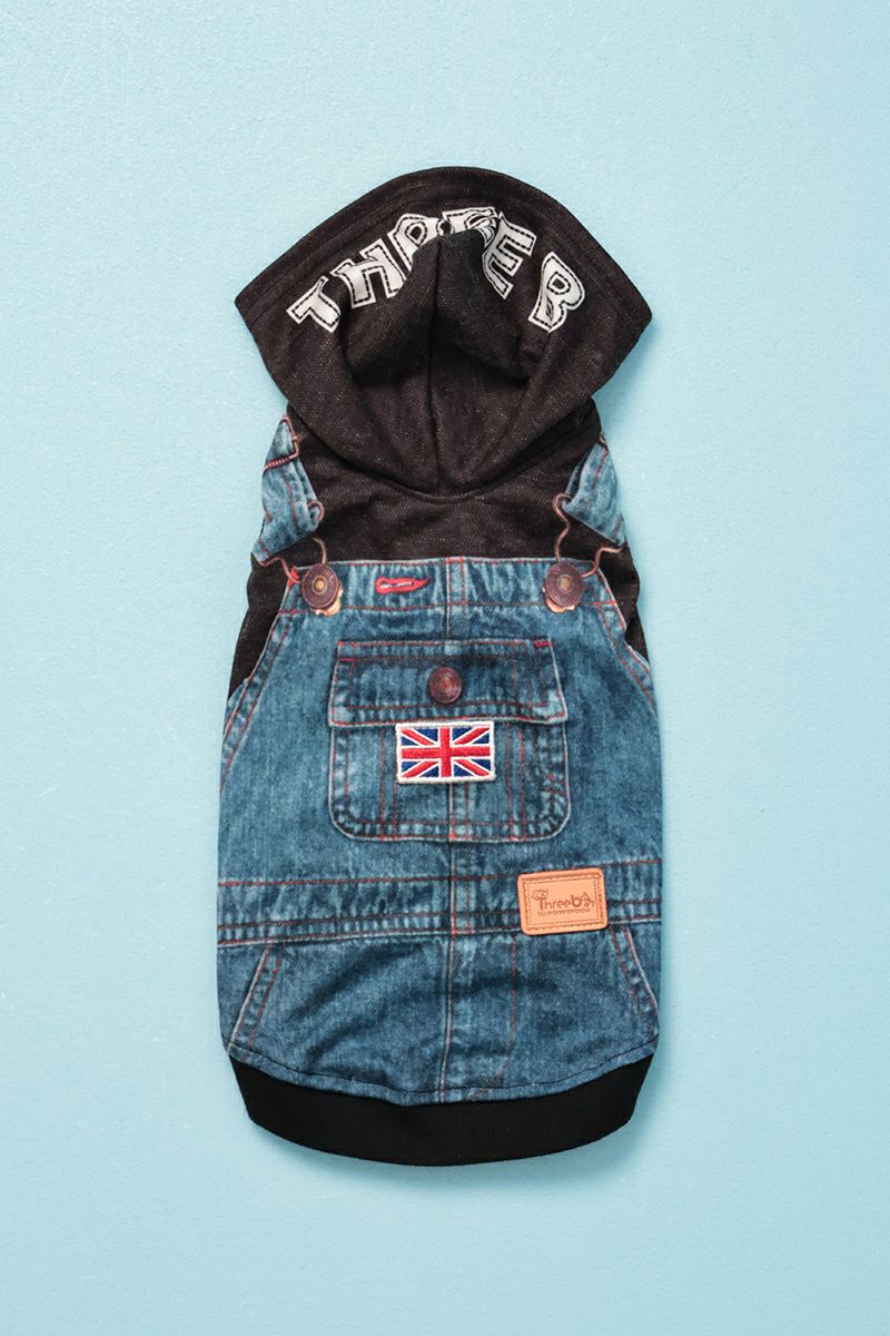 デニムオーバーオール柄パーカー ヒートワン ブラック