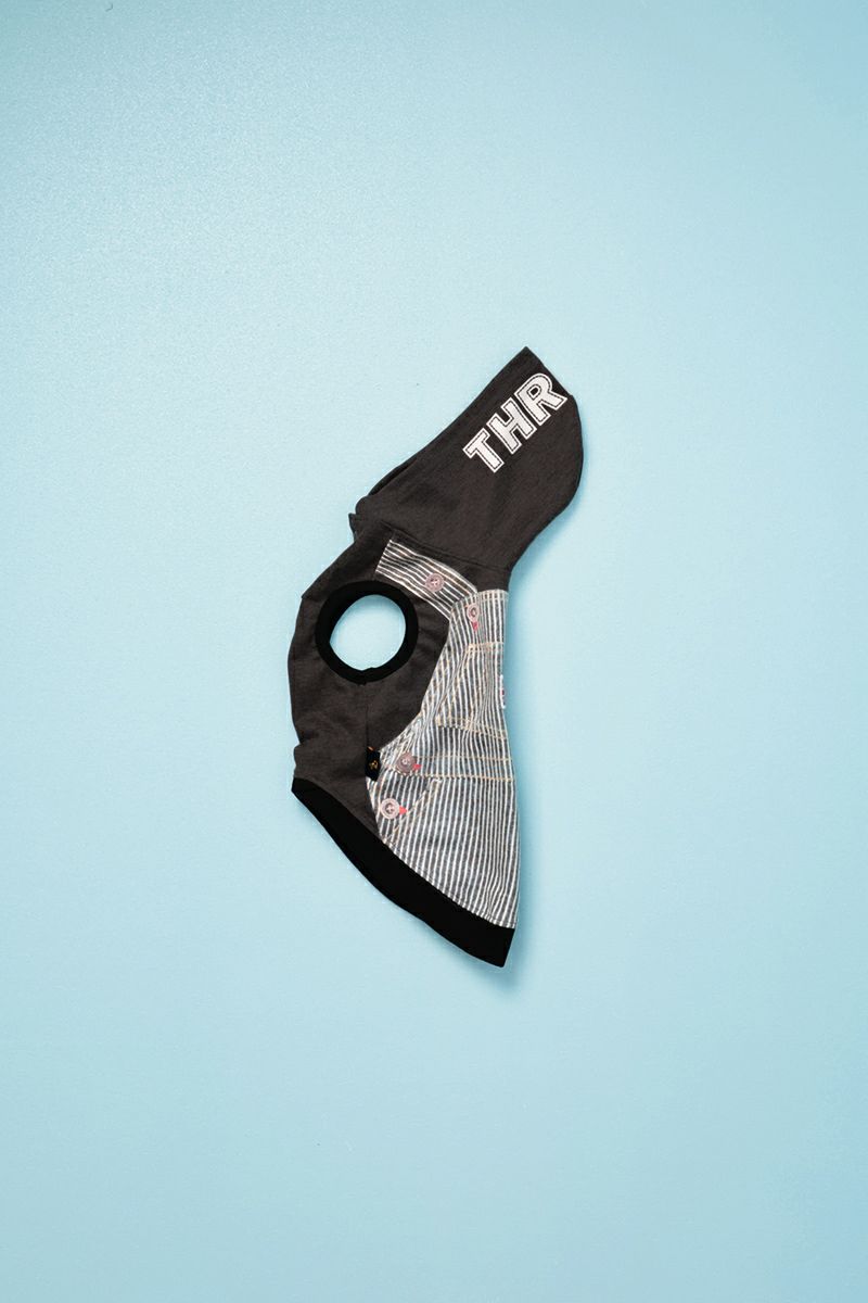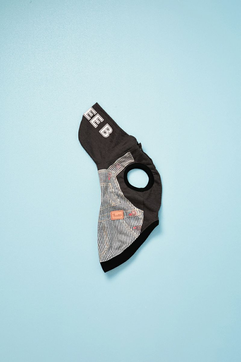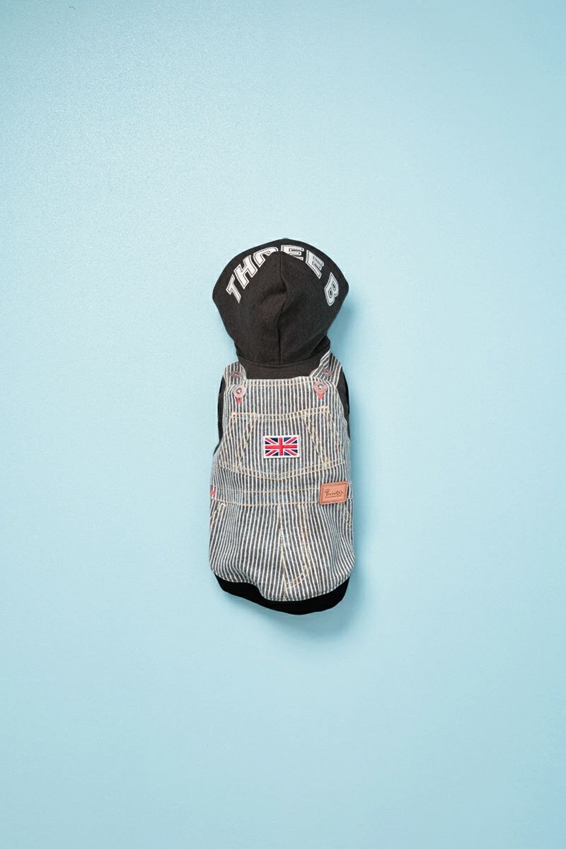 ヒッコリーオーバーオール柄パーカー ヒートワン ブラック